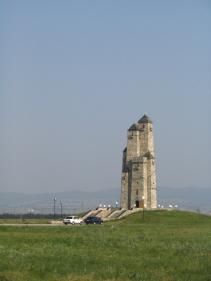 Из Магаса едем к мемориалу репрессированным народам (на фото). Он сделан в стиле старинных ингушских крепостей. Внутри музей с фотографиями и другими экспонатами о репрессиях и депортации северокавказских народов. Потом стенд про осетино-ингушский конфликт 1992 г., который называется не иначе, как «геноцид». (Естественно, осетины тоже называют это геноцидом, но уже геноцидом осетин). Рядом с мемориалом стоит ряд могильных камней (фото 2): они были когда-то сняты с могил и пущены на строительство, но потом найдены (подчас – случайно) и извлечены из стен, из бордюров…