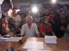 Он забит до отказа (фото 5). Приходят родственники убитых в Новых Алдах, журналисты (две телекамеры!, в Москве никогда больше одной не бывало), зам. министра печати, зам. уполномоченного по правам человека ЧР, члены «Общественной палаты» ЧР. Такого на московских пресс-конференциях не бывает. Мы немного говорим, показываем 13 минут из видео, снятого жителями Новых Алдов через 4 дня после расстрела поселка. Здесь родственники убитых не выдерживают и плачут. На них налетают 2 фотографа. Это вызывает у меня отвращение. На слушаниях 24 октября 2004 г. в Страсбурге я просто попросил секьюрити Суда прогнать фотографов, которые просто ослепили вспышками трех заявителей. Сейчас хочется сделать то же самое, но нет секьюрити и прогонять некуда – офис забит.