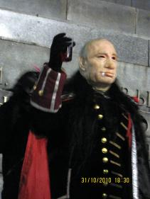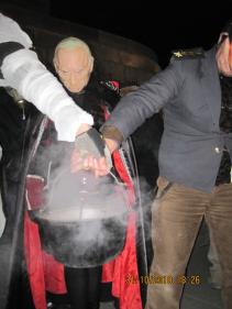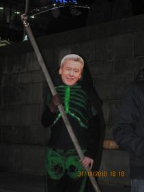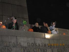 Под ночным небом кружились Кощей Бессмертный, мумия, вампир, монстр Франкенштейна и оборотень в погонах. Все эти персонажи имели лица известных политиков, таких как: Путин В.В., Медведев Д.А., Мишарин А.С. и других. Данные персонажи сварили в котле зелье и, разлив его по стаканам, сказали, что пьют не что иное как «кровь народа», после чего закусили печенькой. А народ, казалось, был вовсе и не против, и даже весел. Музыкальным сопровождением послужила песня This is Halloween из не безызвестного мультика Тима Бартона «Кошмар перед рождеством». Песня исполнялась в трех разных вариантах — хор на английском языке, исполнение данной песни Marilyn Manson, а так же хор на русском языке. В последующем, нагнетающим фоном шел саундтрек из фильмов ужасов.