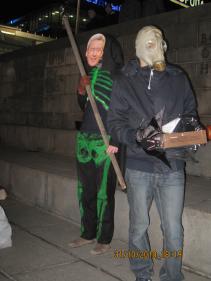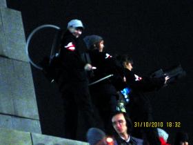 Пикет был довольно яркий и праздничный. Даже обычные прохожие не остались равнодушными. А некоторые приняли участие. Неизвестно откуда взялись 3 охотника за приведениями и, попозировав перед камерами, исчезли так же быстро, как и появились.