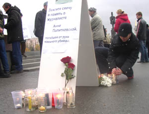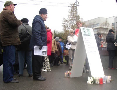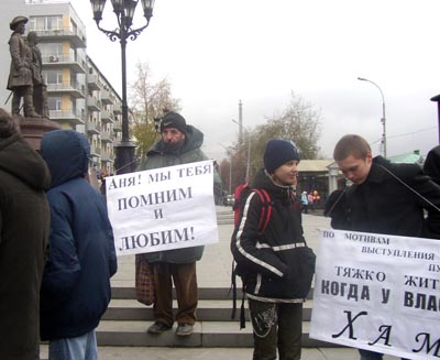 ПРОДОЛЖАЕТСЯ ВАХТА ПАМЯТИ АННЫ ПОЛИТКОВСКОЙ16.10.2006 15 октября с 16 до 18 часов в г. Екатеринбурге прошла акция граждан, посвященная памяти, убитой на день рождения Президента РФ, журналистки Анны Политковской