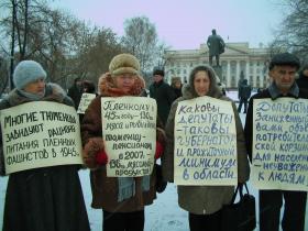 Сталинский НКВД был гуманней нынешней власти?24.01.2007 "Пленному в 45-м году – 130 гр. мяса и рыбы в день, тюменцу – песионеру в 2007г. – 136 гр. мясорыбопродуктов!" - таков был текст одного из плакатов 20 пикетчиков в Тюмени