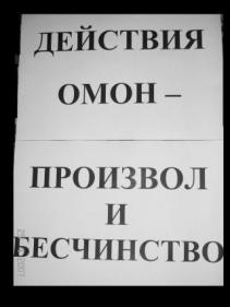 Как проходил пикет ОГФ у Законодательного Собрания Санкт-Петербурга26.04.2007 Сегодня руководитель Питерского УВД был вызван в Законодательное Собрание Санкт-Петербурга для отчета перед депутатми о действиях ОМОН'а и милиции во время "Марша несогласных". Объединенный Гражданский Фронт провел в связи с этим пикет. Далее - свидетельство участника. "Региональное отделение ОГФ решило провести пикет, но им не разрешили. Нас по e-mail уведомили, что пикет все-равно состоится и время сбора в 9.30 у Законодательного собрания. С вечера я заготовила два плаката (см. фото): "Действия омон - позор" и "Действия омон - произвол и бесчинство".