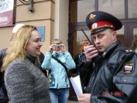 разговаривает с представителем милиции, который говорил, что пикет не