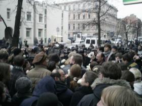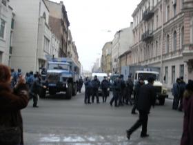О Питерском марше протеста от 25 ноября из первых рук26.11.2007 Внештатный корреспондент информационного агентства Сутяжник-пресс Валентина Михайлова побывала на Марше и была задержана. Как сообщила корреспондент: «Состоялась скорее попытка провести Марш. Массовую акцию внось разогнали. В воскресенье весь день участники провели в милиции за участие в несанкционированном шествии. В компании оказались известные в Питере правозащитники: Н. Евдокимова, Полякова Э. М., Васильева Н., Цепилова О.Д., Рыбаков Ю., О. Курносова и др. Забрали всех на ул. Маяковского недалеко от офиса "Яблока", где был сбор активистов и лидеров. Брали всех лидеров и активистов, а также других граждан, кто так или иначе показывал свое участие в Марше. Мужчин задерживали всех подряд, кто оказался в этот момент на ул. Маяковского. Участников арестовали в 11-00, а в суд привезли около 21-30: продержали более двух часов в 79 отделении милиции, потом перевезли в 29 отделение милиции и там держали до 20-30. Это само по себе является нарушением свободы личности.