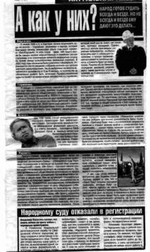 А судьи кто?27.02.2008 Российский региональный еженедельник «МК-УРАЛ» в № 6 от 13 - 20 февраля 2008 г. в рубрике актуальная тема на стр. 6-7 опубликовал большлое интервью с председателем общественной организации «Народный суд Свердловской области» Капустиным В. Я. (см. на нашем сайте в рубрике «статьи»)
