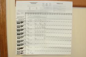 Выборы здесь проходят без участия авторучек - голоса регистрируют машины, очень похожие на неуклюжие зеленые флюорографические аппараты для фотографирования грудной клетки. Заходишь, слева на право поворачиваешь большой рычаг, который закрывает шторку кабинки, после поворачиваешь маленькие рычажки напротив выбранной партии, возвращаешь большой рычаг в исходное положение, что-то щелкает - голос учтен.