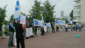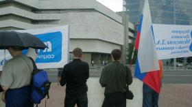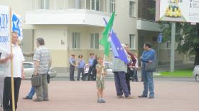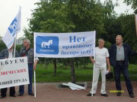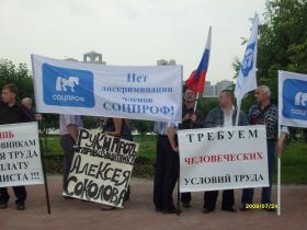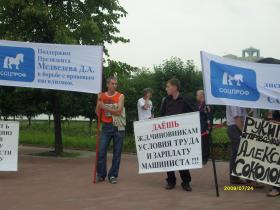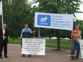 МИЛИЦИЯ ОТНЕСЛАСЬ К ПИКЕТУ ПРОФСОЮЗОВ СЕРЬЕЗНО24.07.2009 Количество старших офицеров МВД, окруживших полу-кругом пикет профсоюзных активистов превысил численность последних