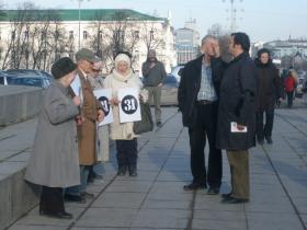 31 СТАТЬЯ КОНСТИТУЦИИ ОТМЕТИЛАСЬ В ЕКАТЕРИНБУРГЕ31.03.2010 Горожане, по зову сердца примкнувшие к группе с листками и нанесенной на них цифрой 31, были изгнаны с прилегающей к памятнику Ленину территории, организаторами. ОМОН отдыхает...
