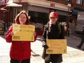 ПРЕСЛЕДОВАНИЕ ПРАВОЗАЩИТНИКОВ ИСПОЛНИТЕЛЬНОЙ ВЛАСТЬЮ НИ КАК НЕ ОФОРМИТСЯ СУДЕБНОЙ03.04.2010 Международная общественность продолжает пристально наблюдать за происходящим в судебном зале провинциального городка Богданович, что в Свердловской области. "Международная амнистия" проводила очередное заседание в Лондоне, Великобритания. Одним из вопросов вызвавших всеобщее внимание и бурную реакцию участников, оказалось сообщение о продолжающемся судебной расправе над руководителем общественной организации "Правовая основа"из Екатеринбурга Алексеем Соколовым. Действия российских властей осудили представители всех континентов, большинство вышло на улицы и демонстративно выказали поддержку борцу за права человека, узнику совести с Урала.