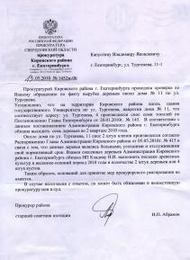 Ответ прокурора Кировского района на жалобу по порубке деревьев