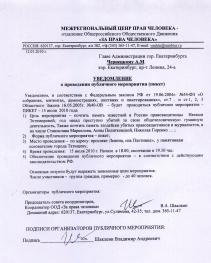 ПИКЕТ ПРАВОЗАЩИТНИКОВ АДМИНИСТРАЦИЯ ЕКАТЕРИНБУРГА НЕ МОЖЕТ РЕГЛАМЕНТИРОВАТЬ14.07.2010 Мемориал и За права человека информировали мэрию столицы Урала, что во время Петербургского Российско-Германского диалога в Екатеринбурге пройдут пикеты памяти правозащитников, случайно погибших в эти же дни. Но сбудутся ли надежды представителей гражданского общества на то, что им удастся своевременно помянуть соратников - большой вопрос? По сведениям, поступающим из неофициальных источников, чиновники мэрии предложили Мемориалу перенести мероприятие в другое место, а Движению за права человека на другой день. Если внимательно анализировать один из официальных ответов, то мастерство эзоповой логики у мэрских чиновников возросло. Общественники полагают, что коли закон не нарушают, а власти с этим согласны, то проблемы регламентирования будут улаживать на месте. СУТЯЖНИК ПРЕСС планирует наблюдать за действиями сторон и сообщить, кому удалось нарушить закон и Конвенцию, не желая ее нарушать изо всех сил.