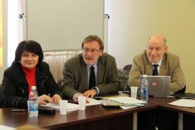 Президент Фонда «Индем» (г.Москва) Григорий Сатаров рассказал о трансформации судебной власти, институтов и практики - социсследования показывают, что качество правосудия не зависит от качества законодательства. Исполнительный директор Московской Хельсинской Группы (г. Москва) Нина Таганкина выступила с презентацией исследования о роли общественности в квалификационной коллегии судей (ККС), отметив мизерное представительство в них общественных организаций. Сотрудник Фонда свободы информации (г. Санкт-Петербург) Татьяна Толстенева, рассказала о мониторинге информационной открытости официальных сайтов судов и органов судебного департамента в России (Пермский краевой суд занимает 14 позицию). Сотрудник Института проблем правоприменения (г.Санкт-Петербург) Михаил Поздняков анализировал результаты социсследования, показавшие недостаточность миграции судей – они не только замкнуты в своем сообществе, но и в своем регионе. В своих выступлениях участники отмечали, что Пермский край – регион России, где постоянно ведется конструктивный диалог с гражданскими институтами: в каждом суде общей юрисдикции работают общественные приемные граждан; представитель Пермского регионального правозащитного центра входит в квалификационную коллегию судей края; успешно реализован проект по созданию консультационных центров правовой помощи, проводится системная работа по внедрению восстановительных ювенальных технологий, медиации, формированию правовой культуры учащихся.