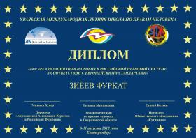 УЧАСТНИКИ УРАЛЬСКОЙ МЕЖДУНАРОДНОЙ ЛЕТНЕЙ ШКОЛЫ УВЕЗЛИ ПРАВА ЧЕЛОВЕКА ДОМОЙ В 15 УГОЛКОВ РОССИИ И 4 ИНОСТРАННЫХ ГОСУДАРСТВА14.08.2012 А организаторы остались с укрепившимся намерением создать Международную магистратуру по правам человека 10 августа вручением дипломов завершилась II Уральская Международная Летняя Школа по Правам Человека.