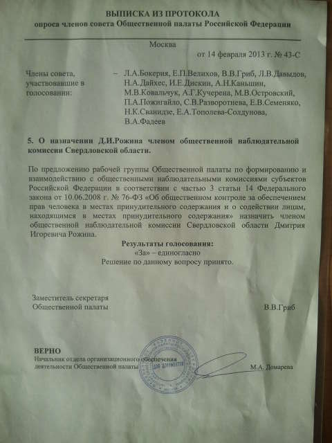 ОБЩЕСТВЕННЫХ НАБЛЮДАТЕЛЕЙ ПРИБЫЛО22.02.2013 Несколько часов назад в Общественной палате России, в торжественной обстановке, Дмитрию Рожину вручен мандат наблюдателя в Свердловской области СУТЯЖНИК, выдвинувший Дмитрия Рожина на столь беспокойную и хлопотную деятельность уже в третий раз, надеется на то, что профессиональный юрист, воспользуется доверием во благо и на пользу.