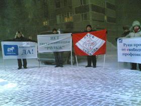 ЕСПЧ НАПИСАЛ «СЦЕНАРИЙ» К ФИЛЬМУ «АНАТОМИЯ БОРЬБЫ С ПРОТЕСТОМ»17.04.2014 «Сценарий» коммуницирован властям России для «согласования», посвящен структурной проблеме в российском законодательстве о свободе собраний и практике его применения. Съемки пилотного постановления начнутся после ответа заявителей на меморандум властей. (на фото Александр Захаркин, Председатель профсоюза "Профсвобода", и члены профсоюза после освобождения из отделения милиции, Ханты-Мансийск) Идея сценария – история развития выражения мнения граждан на публичных одиночных мероприятиях – очевидна. Часто вынуждено граждане проводили одиночные пикеты и демонстрации, так как массовые мероприятия были либо невозможно согласовать, либо на это не оставалось времени. Например, закон о запрете усыновления принимался так быстро, что до принятия закона Государственной Думой просто не оставалось законных 10 дней для направления уведомления властям о проведения демонстрации. Сценарий богат разнообразностью сцен. Связующим звеном сцен являются методы властей по борьбе с одиночными пикетами – через несколько минут к пикетчику подходил милиционер, который потом доставлял «нарушителя» в райотдел милиции/полиции. Задержанный проводил там около трех часов, после чего задержанного отпускали. Цель достигнута – акция прервана. Заявители жалуются на лишение свободы, имеющую цель исключительно прервать акцию протеста. Протоколы о задержании и доставлении, как правило не составлялись, обвинение поддерживал сам суд, полицейские отказывали предоставить видео записи. Доходило до курьезов, полицейские предлагали судье прийти в отдел милиции с жестким диском для копирования видео записи. Но, как правило, записи пропадали, и копировать было нечего, даже если бы судья пришел. В каких-то случаях пикетчика принимали за подозреваемого в совершении уголовного преступления по двум уникальным признакам «европеец» и «50-ти лет», доставляли в отдел полиции для «добровольного» фотографирования и снятия отпечатков пальцев. Где-то просили «прохожего» в штатском подержать плакат пока пикетчик-одиночка подписывает предупреждение о нарушении, а после оформляли протокол о проведении массовой демонстрации в составе 2-х человек без согласования. Среди заявителей в ЕСПЧ есть и журналист, которого задержали вместе с пикетчиком одиночкой – оба жалуются на лишение свободы и права выражать мнение (собирать информацию), пикетчик также жаловался на нарушение права собираться мирно в одиночку. Некоторые пикетчики безуспешно пытались взыскать стоимость разорванного полицейскими плаката. Ставятся вопросы о получении издевательских сумм компенсации морального вреда, причиненного незаконным лишением свободы (6000 рублей), о жестоком и бесчеловечном обращении в связи с использованием полицейскими силовых приемов и наручников. Жалуются на нарушение права митинговать с плакатом о несоблюдении социальных указов Президента во время визита Владимира Путина в деревню Пешково. Часть жалоб объединяет то, что дело об административном правонарушении было рассмотрено мировым судей, когда в связи с изменениямми КоАП с 1 января 2013 года такие дела должны рассматривать судьи районного суда, а апелляцию, соответственно, областной суд. Не менее важны поставленные вопросы о законности полномочий 