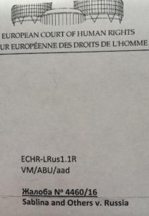ЕВРОПЕЙСКИЙ СУД ПРИСТУПИЛ К РАССМОТРЕНИЮ ДЕЛА АЛИНЫ САБЛИНОЙ21.03.2016 из Европейского Суда поступил документ о регистрации жалобы - для отправки в Суд готовятся документы об отказе Конституционного Суда России разрешать проблему тайного изъятия органов, а также результаты социологических опросов, которые послужат доказательствами тайного изъятия органов