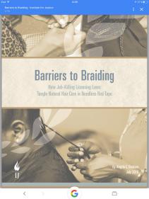 Одно из самых интересных дел Института правосудия касалось запрета на открытие салонов плетения африканских косичек без официальной лицензии от властей. Например, в штате Айова для такой лицензии нужно потратить тысячи долларов и пройти курс по косметологии (который вообще с плетением косичек ничего общего не имеет). Институт взялся за отмену такого нелогичного и пагубного для мелкого бизнеса закона в прошлом году. Процесс в суде пока не закончен, но о нем уже говорит вся страна. Это - заслуга отдела коммуникаций.