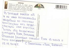 "В течение многих лет я не имел возможности увидеться со своими близкими без разделяющей нас решетки. Теперь это возможно. благодаря Вам, Вероника. Огромное душевное спасибо Вам от меня и моих близких!" (открытка на фото)