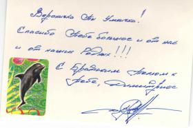 "Вероника ты умничка! Спасибо тебе большое от нас и от наших родных!!!" (открытка на фото)