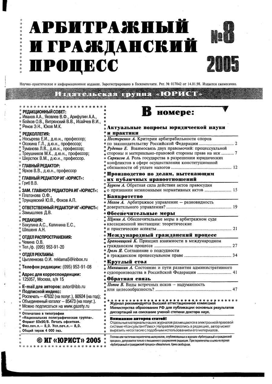 Арбитражный и гражданский процесс. 2005. № 8. С. 15-18. Из