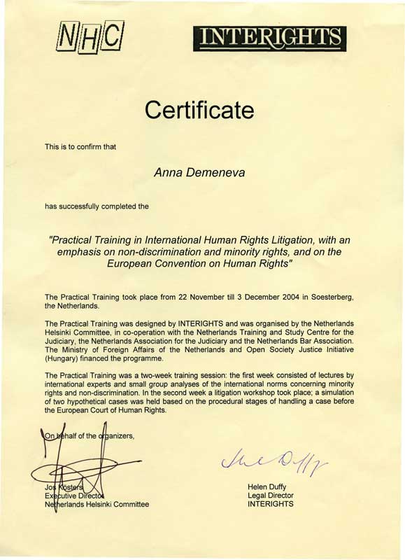 Нидерландским Хельсинским комитетом и Международным центром юридической защиты