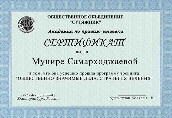 сертификатов об участии в тренинге, обменом национальны подарками, прощальным